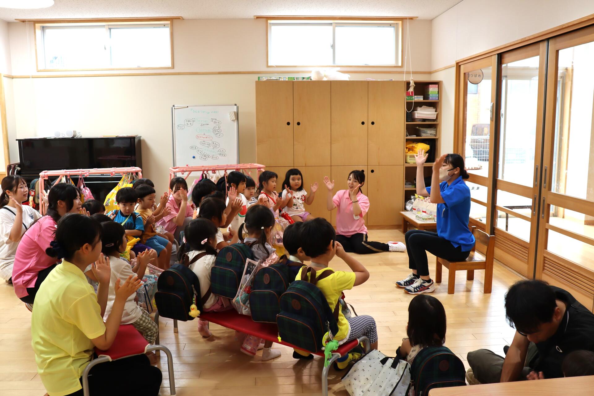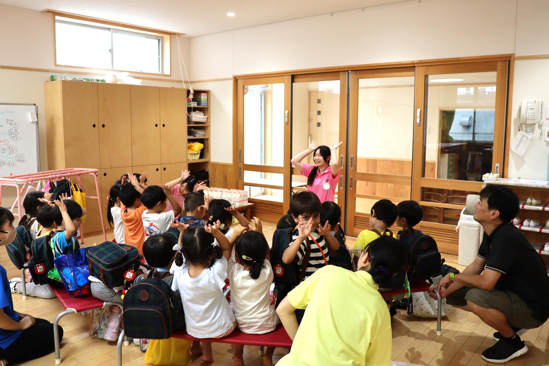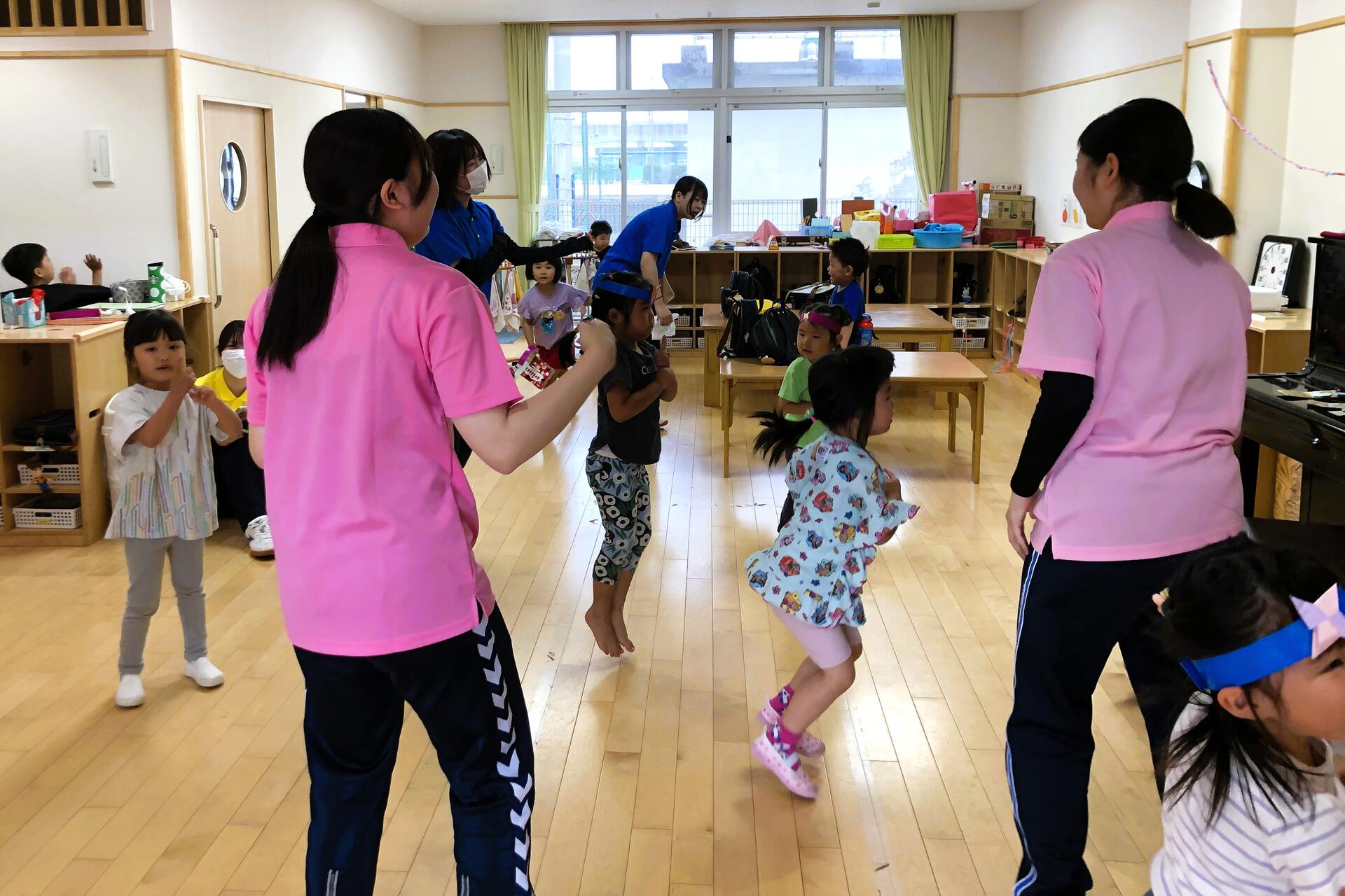 - 園児の前で手遊びを行い、一緒に楽しむことができました。今後は、歌にテンポやアレンジを工夫してさらに遊びが広がるような展開になるように、準備をしていきたいです。