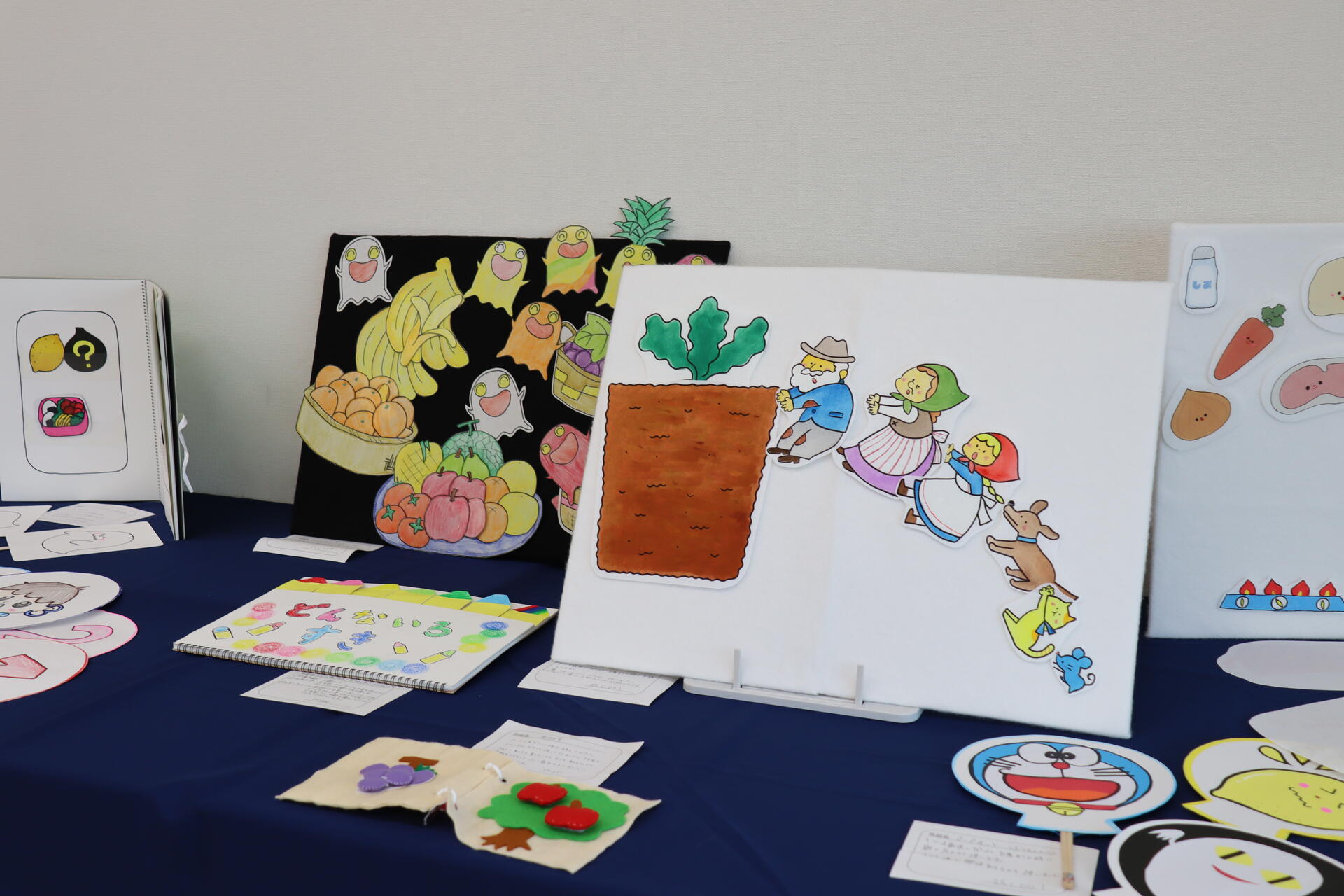 学科展示コーナーでは、授業で作成した教材やポスターなどを展示しました。