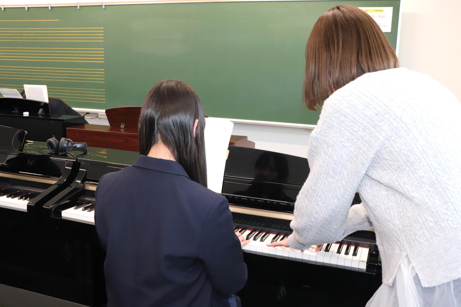 続いて、入学予定者の皆さんには、4グループに分かれて自己紹介を行ってもらい、それぞれ30分間の絵本紹介のグループワークとピアノの体験会に参加していただきました。