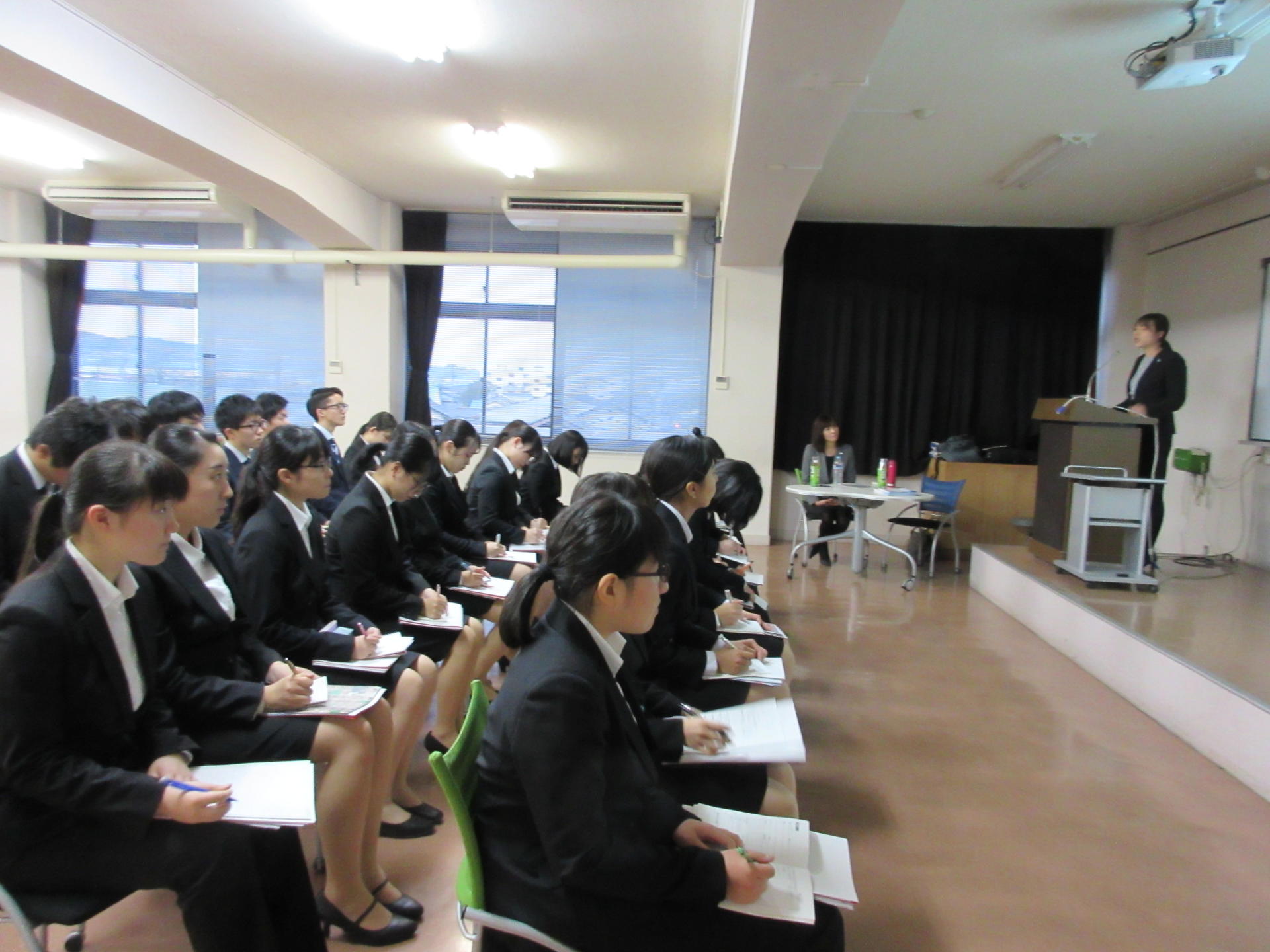 1年生約130名は、5つのグループに分かれて、企業の採用担当者から説明を受けました。採用担当の方々には、とても熱心に企業紹介を行っていただきました。
