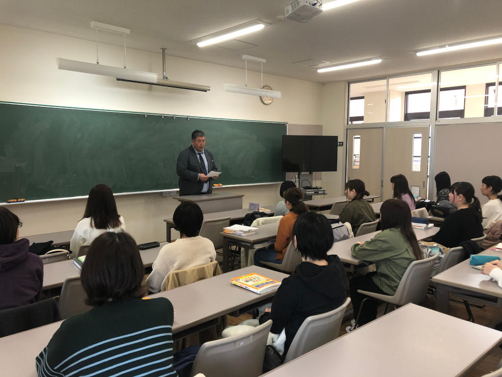 関 好博 学科長が、受験に臨む学生たちに向けて、熱い激励の言葉を伝えました。学生たちは、しっかり前を向き、メッセージを胸に刻んでいました。