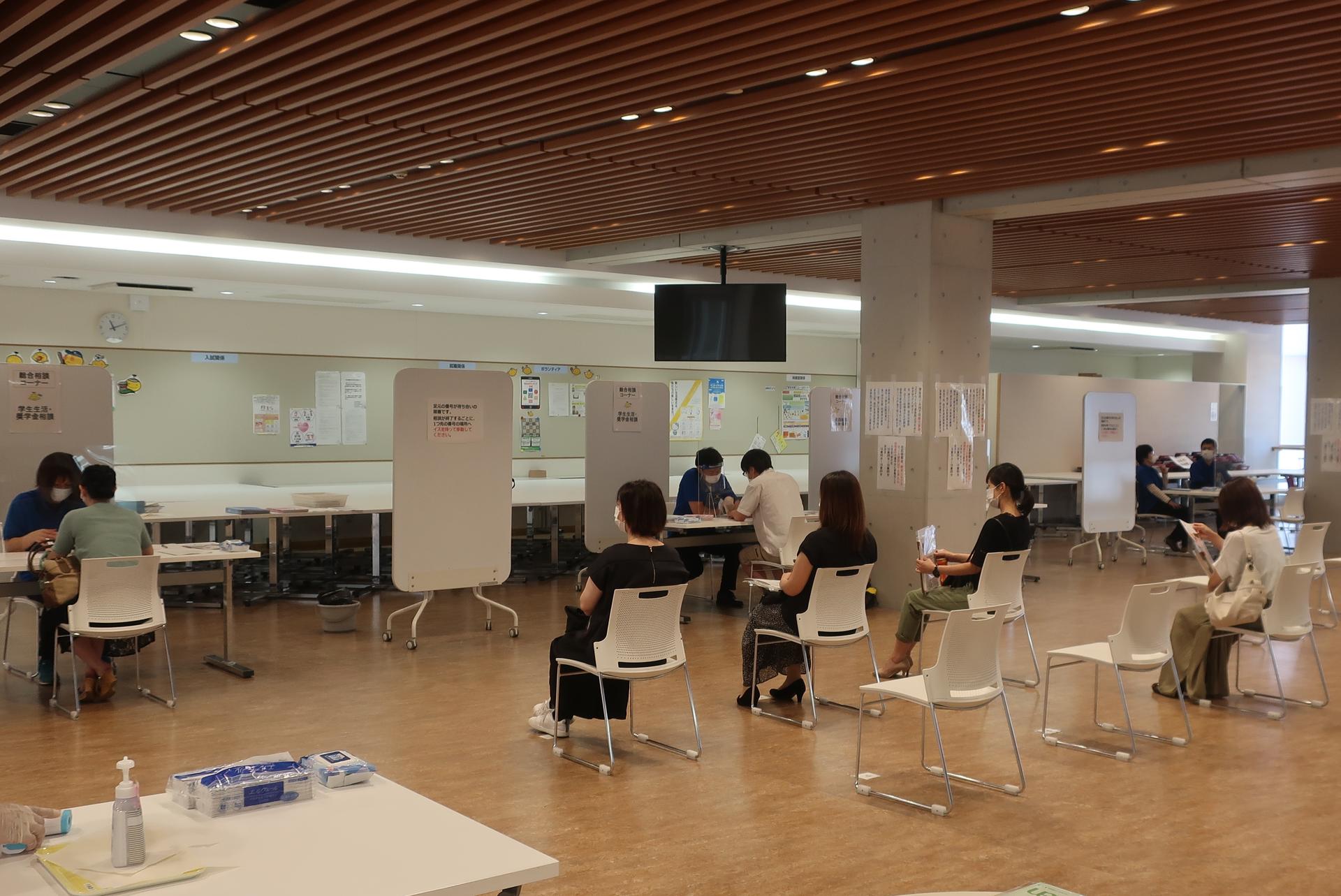 相談ブースには、参加者の方と本学スタッフの間に透明のアクリルパネルを設置して、飛沫感染防止に努めました。また、相談者の入れ替わりの際には、アルコール消毒を徹底したうえで相談対応を行いました。