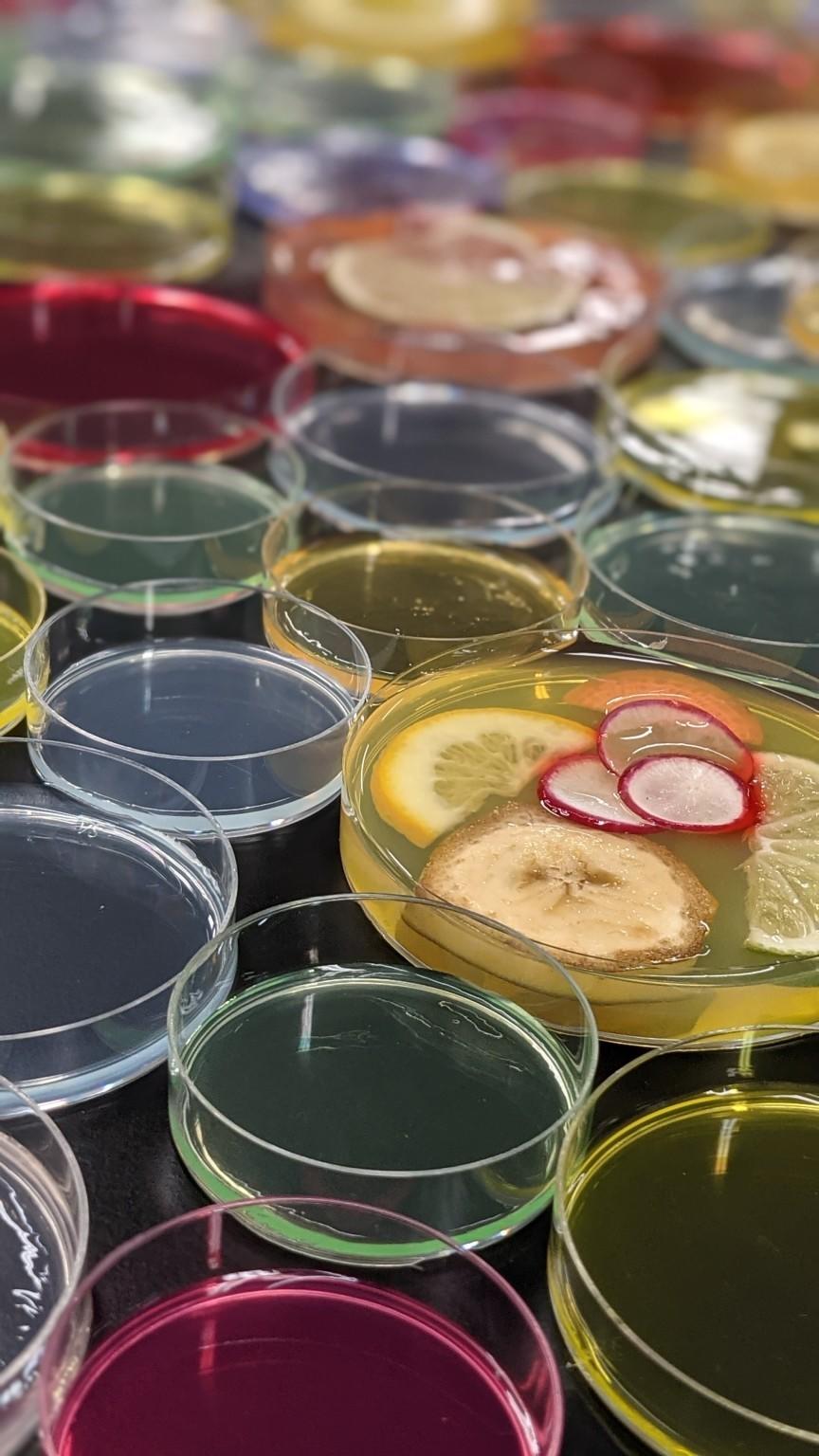 約800枚のシャーレを用いた作品は、実際にみるとそのキラキラ感が増していました。