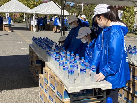 学生たちは、給水班、タオル班、メダル班に分かれ、ゴールしたランナーをお迎えしました。
