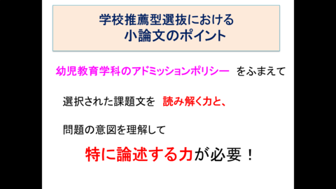 今回は「推薦入試に特化した内容」で実施しました。オンライン開催のため、自宅で保護者の方と一緒に視聴していただいた方も多かったようです。