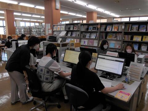 富山短期大学付属図書館は、富山国際大学呉羽キャンパス図書館でもあり、講習会は4月から、短大、大学のどちらからも予約を受け付け、順次実施しています。