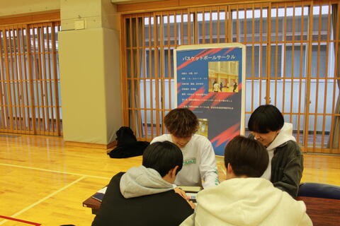 運動系は体育館で体験会を行い、文化系はG館学生ホールにブースを設け、新入生は先輩の話を聞き、交流を深めました。
