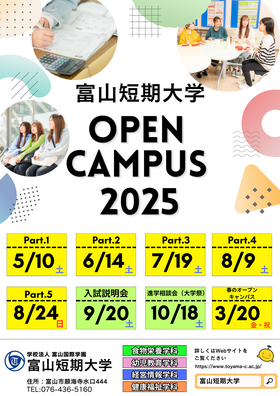 2025(令和7)年10月18日(土)11:00~14:00に、本学の第5回 呉羽キャンパス合同大学祭にあわせて、「進学相談会(大学祭)」を実施します。
