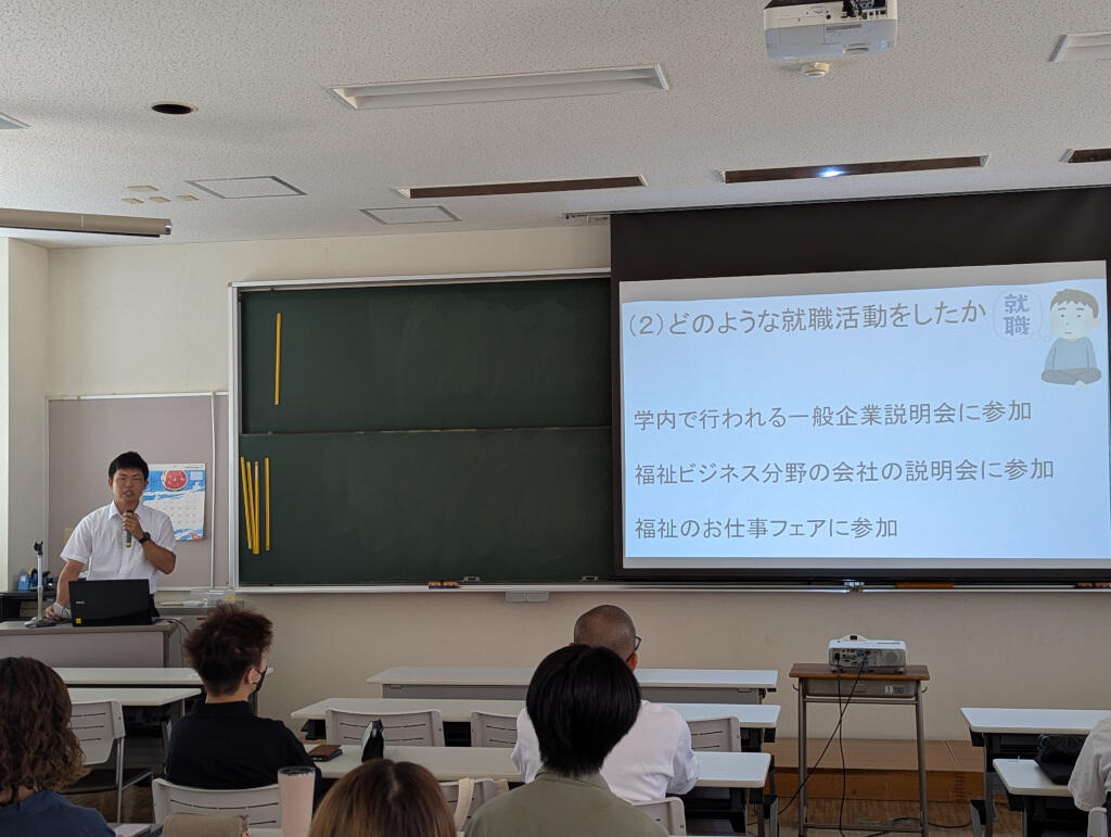 - 自分に合った施設を選ぶことで充実した仕事につなげられると聴き、就職先選びの大切さを感じました。そのためには、見学に行って雰囲気を見てくることが大切だとわかりました。