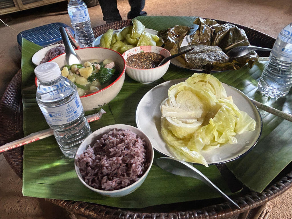 今回、アカ族の一般家庭でお昼ご飯をいただきました。なんと、そこには日本の"赤飯"と同じようなご飯ありました。日本と同じでお祭りなどのおめでたい席では"赤いご飯"をふるまうとのことでした。