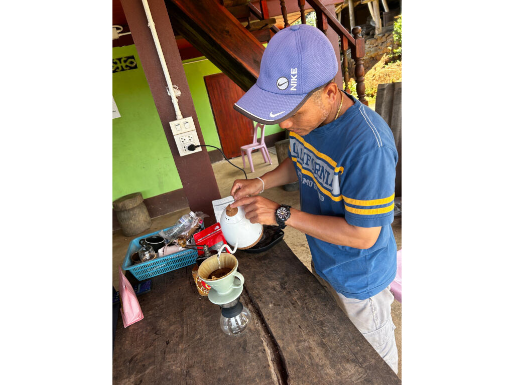 標高1,400メートルの山々を眺めながらのアカ族のバリスタが淹れるコーヒーを堪能しながら、"ソーシャルビジネス"について話し合いました。