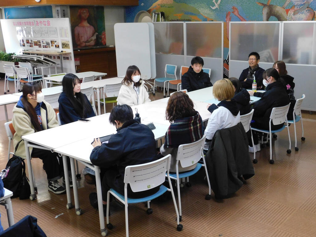 2026(令和8)念2月4日(水)、本学プレゼンテーションスタジオで、全員の進路が定まったこの時期に、2年生から1年生へ自分たちの経験を伝えたり、1年生からの質問に答えたりするなかで、1年生は来る進路決定の参考にするとともに、就職活動や編入学などへの準備を始めるきっかけとすることを目的に、毎年開催しています。